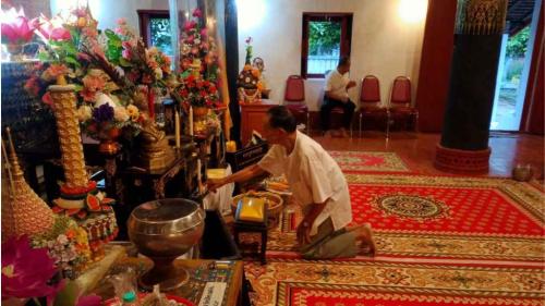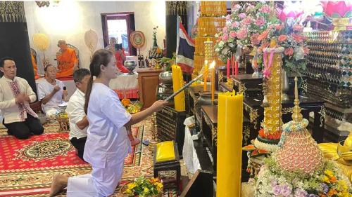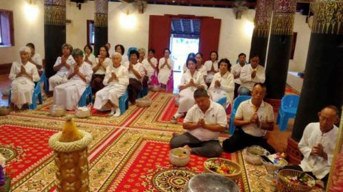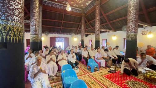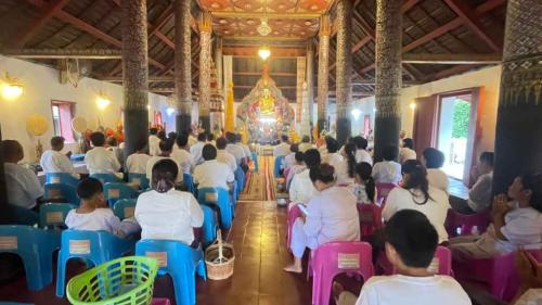 กิจกรรม: คณะศรัทธาในหมู่บ้านร่วมกันนำอาหารคาวหวานมาตักบาตรและฟังธรรม เพื่อความเป็นสิริมงคลแก่ตนเองและครอบครัว